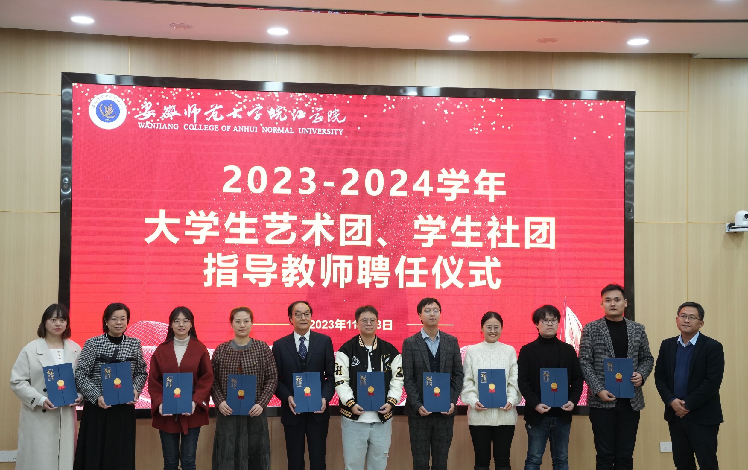 本次大学生艺术团、学生社团指导老师聘任仪式暨十佳社团颁奖仪式的举办,体现了学院对大学生艺术团、学生社团发展的关心与重视。大学生艺术团和学生社团建设不断完善,既丰富了第二课堂活动形式,也体现学院立德树人的教育理念,通过开展各项校园文化活动为学生实践锻炼提供了广阔舞台,助力皖江学子的全面发展。