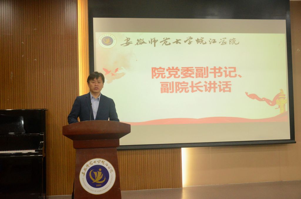 本网讯 在全院上下深入学习宣传贯彻党的二十大精神之际,12月3日,安徽师范大学皖江学院第三次学生代表大会在东二五楼报告厅顺利召开。院党委副书记、副院长王传辉,院党委委员、学工部部长张铮,院团委书记邵敏,各系团总支书记以及130名学生代表参加会议。