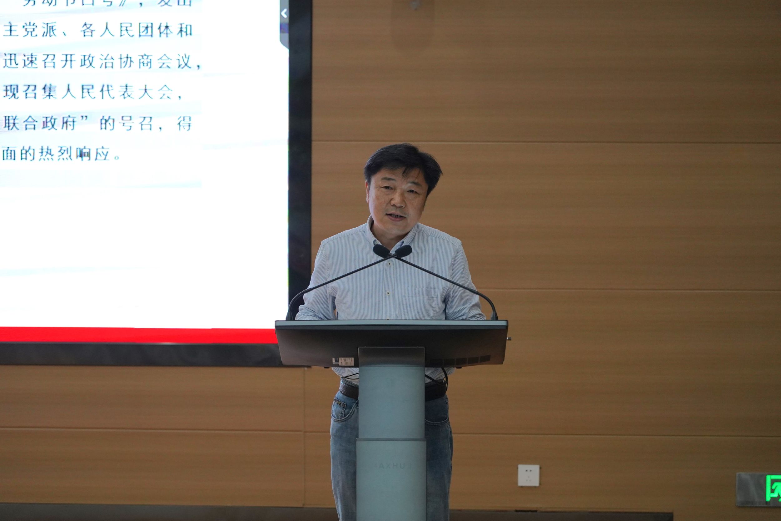 郁文忠作专题讲座,从“什么是政协”和“怎样撰写政协提案”两个方面向在场师生介绍了人民政协的性质以及如何撰写一份高质量提案;其次在提案的选题方面给出了具体指导意见,提出应该从“先期调研”“扬长避短”“优中选精”“大题小做”四个方面着手。最后他回答了政协委员应怎样尽职履责解决问题,推动地区发展。