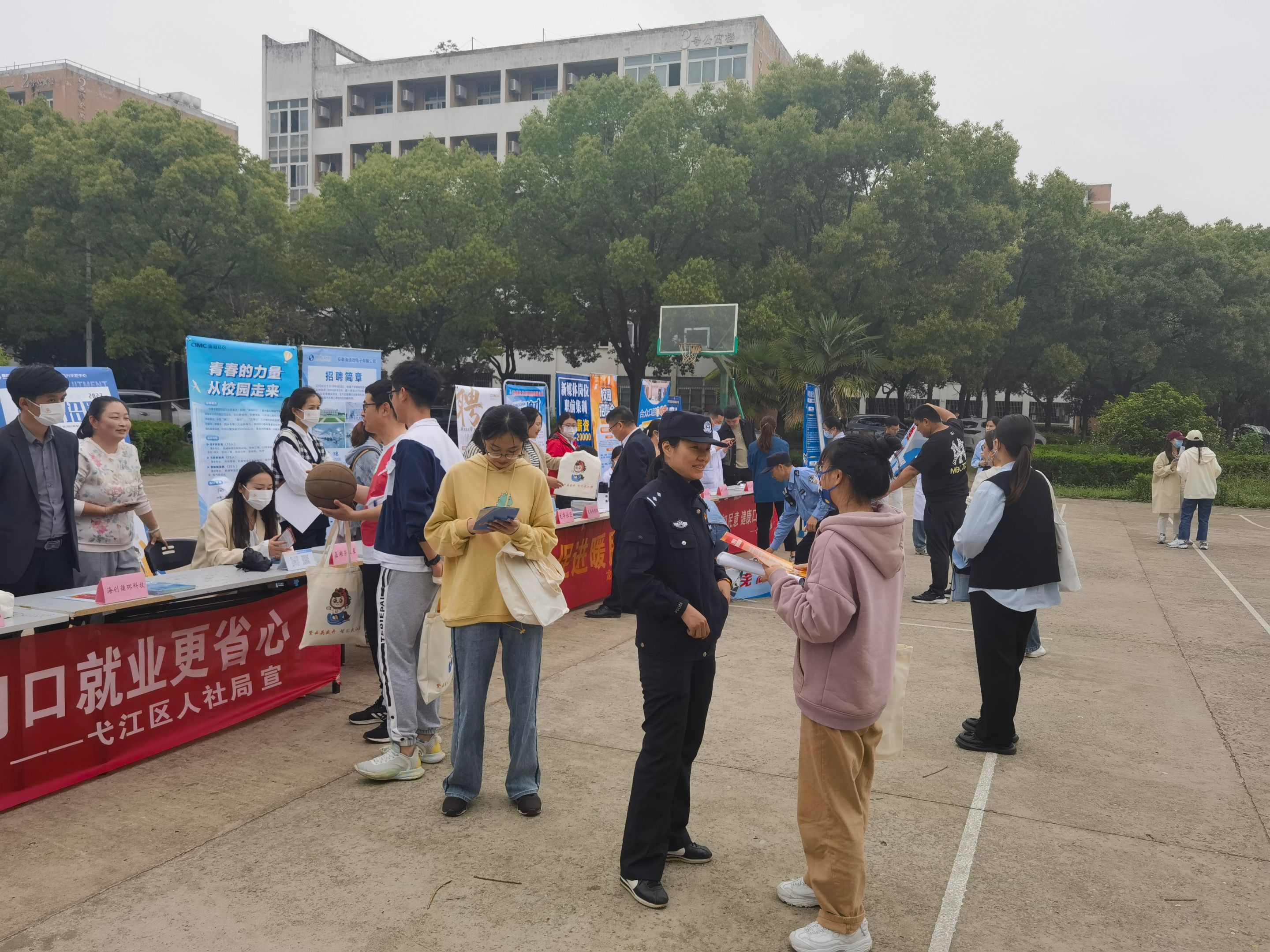 活动现场弋江区委人才办、区人社局进行政策宣讲、政策解答,并组织了区内17家重点企业进行现场招聘,为我院毕业生答疑解惑,提供就业信息、就业渠道。龙华社区负责人围绕面试指导、职业规划、成长发展等毕业生关注的问题,与部分毕业生进行沟通交流,为他们提供就业指导、职业技能培训。市高校园区派出所相关人员就常见的诈骗类型手段、经典案例向现场学生介绍如何预防被骗。