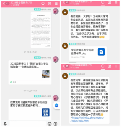 利用新生到校前的“教育黄金期”,有计划地进行新生前置教育工作。从8月中旬开始,依托学院新媒体平台和学前教育系网站,科学设置教育内容,依次推送包括入学准备、资助、学业规划指南等内生未到校,先入群,未谋面,先交流,及时解答新生入学前的困惑。