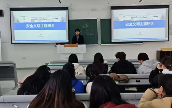 班会以安全教育为核心,各班辅导员围绕疾病防控、食品卫生、心理健康、消防安全、网络安全、交通安全、防范诈骗等校园安全重点关注内容组织开展,并结合近期社会及校园安全事故的典型教育案例,进一步讲解了各类问题的安全隐患与精准防范。