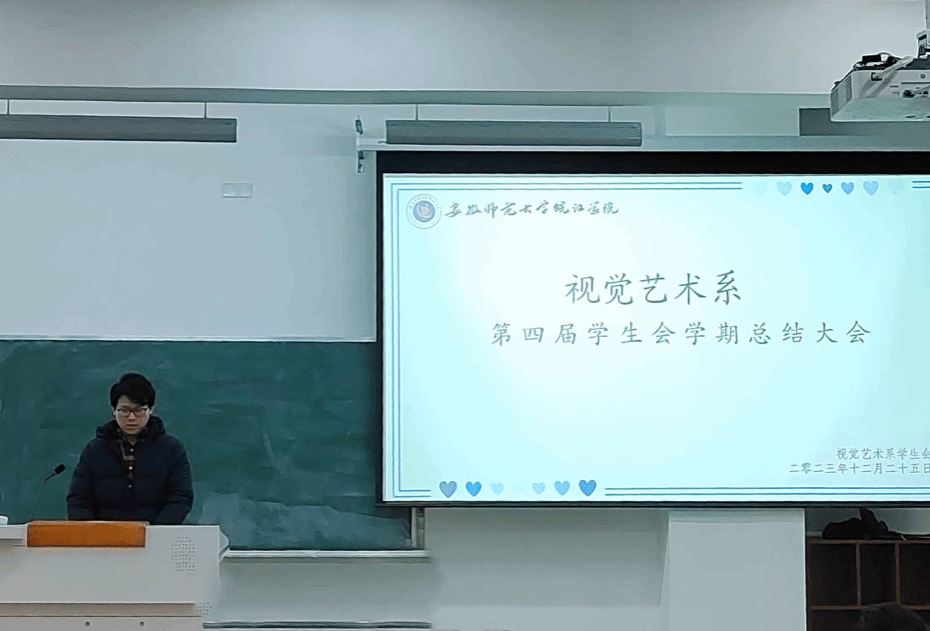 12月25日晚7点,视觉艺术系在5栋A107教室举行了学生会学期工作总结大会。系学生会主席团、系学生会各部门负责人及全体成员参加会议。会议由系学生会主席王晓飞主持。本次会议旨在总结学生会本学期工作情况,总结经验教训,加强各部门工作互助协作机制的运行,提高工作效率,促进学生会自身建设,同时调动学生会成员对工作的积极性。在此之前,系学生会已于2023年12月22日晚举行了学生会各部门负责人向团总支、主席团进行个人述职汇报。