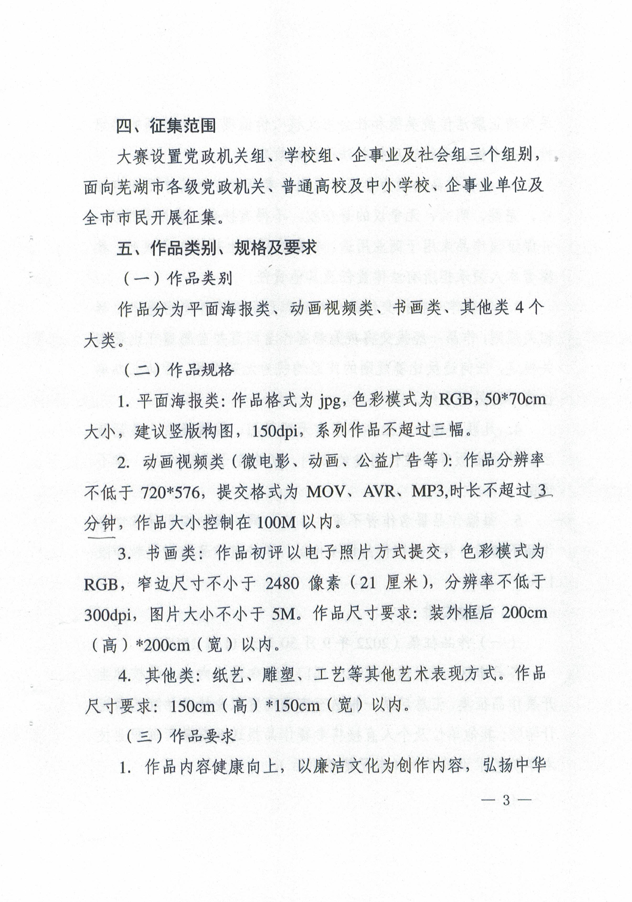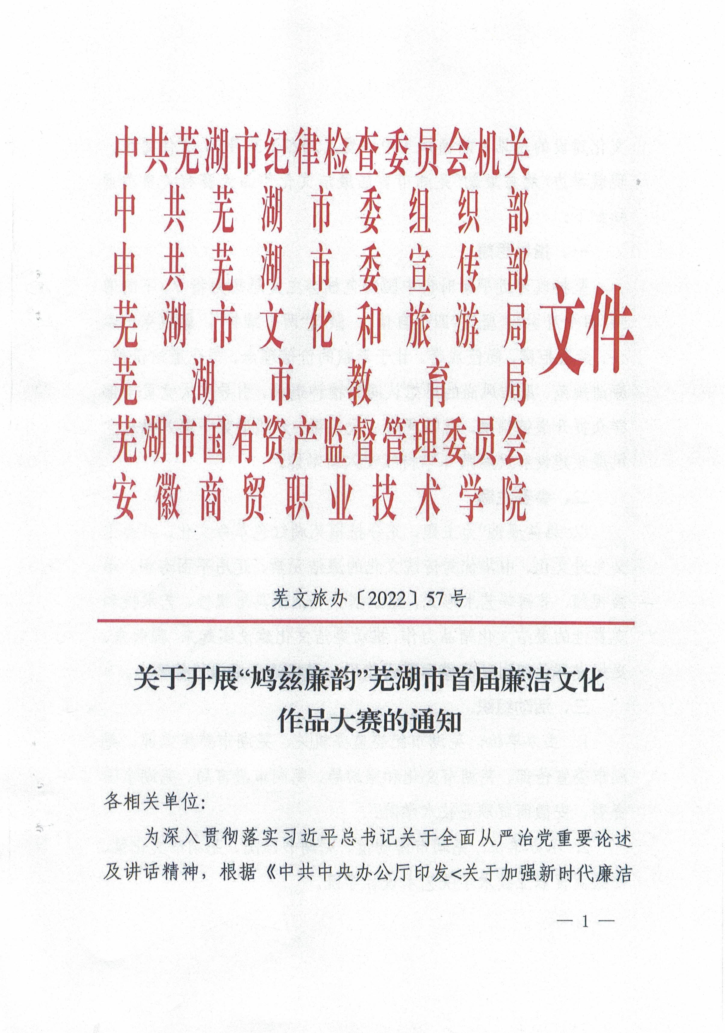 关于开展“鸠兹廉韵“芜湖市首届廉洁文化作品大赛的通知(芜文旅办〔2022〕57号)