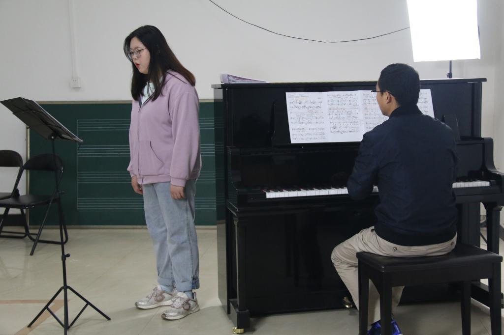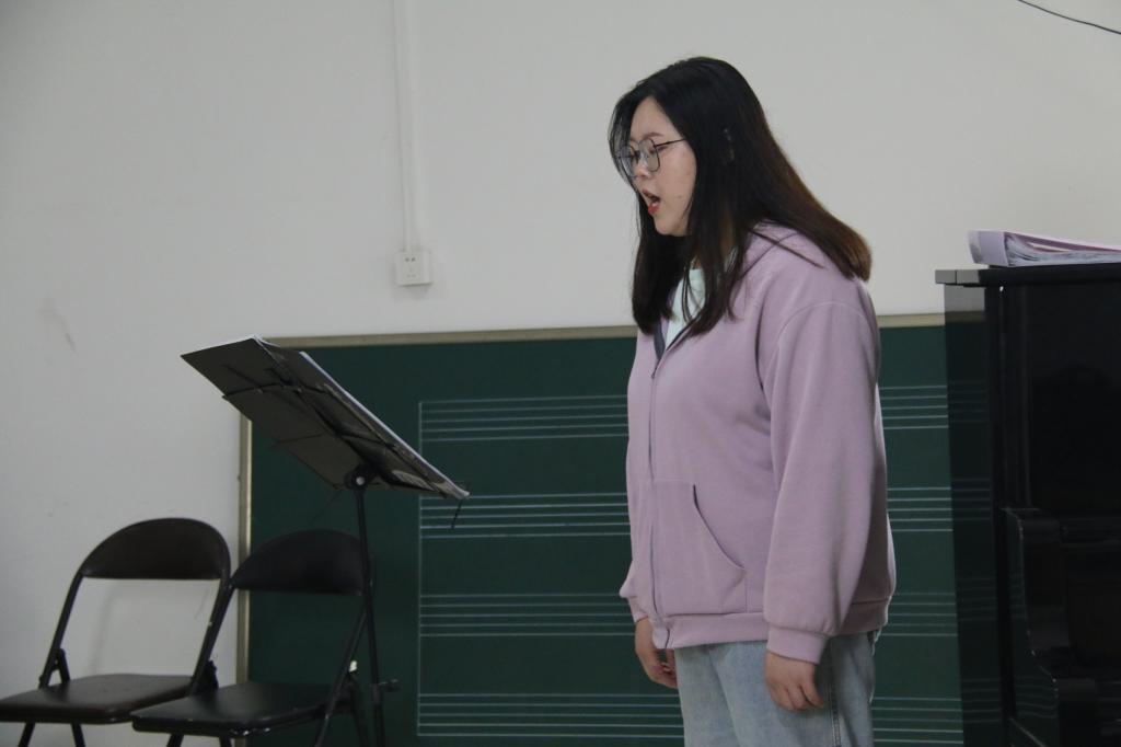 此次观摩课授课对象为音乐表演专业本科二年级学生汪筱婷,课程为《声乐基础课》,授课过程主要围绕歌唱的呼吸、声音的位置、力度控制等技术问题,和歌曲《清晰的记忆》的演唱技巧及音乐处理等问题进行了针对性训练。在歌曲演唱环节,武松林老师对这首红色经典歌曲的创作背景、表达的情感、演唱难点等进行了详细的讲解。武松林老师的讲课因材施教、由浅入深、声情并茂。他指出问题时针对性强,并及时提出解决办法,再通过亲自示范,让同学立竿见影地感受到正确的演唱方法。